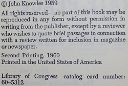 Dedicated to John Knowles' Parents, James M. Knowles and Mary Beatrice